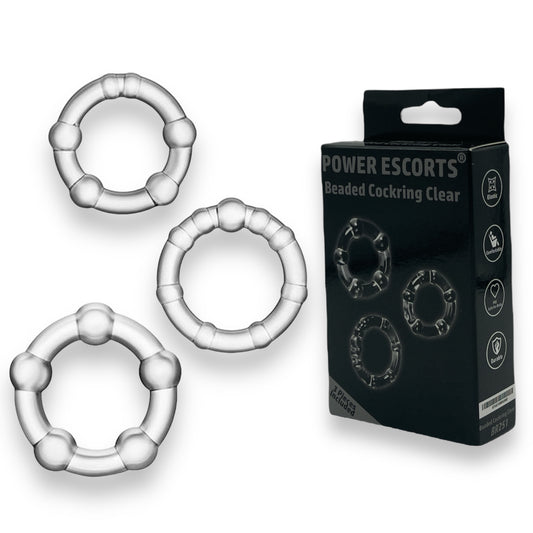 Power Escorts - BR251 Clear - Beaded Cockring 3 Pack - Super Stretchable - Colourbox