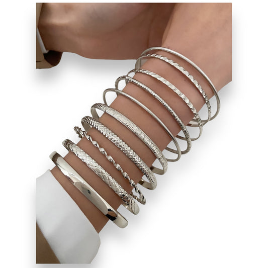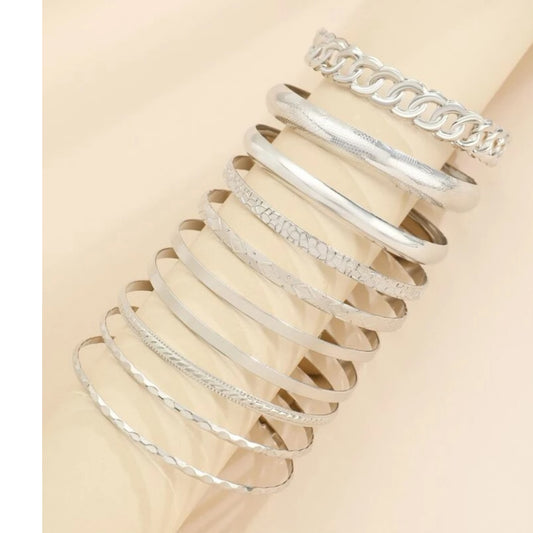Kinky Pleasure - S021 - Exclusive 10-Piece Silver Bracelet Set for Women
