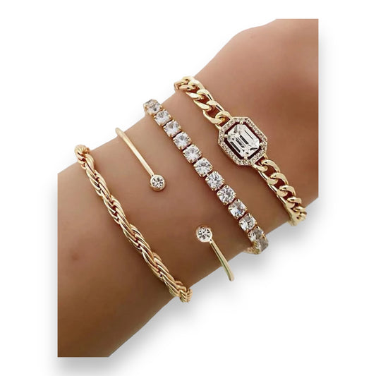 Kinky Pleasure - S022 - Exclusive Diamond 4-Piece Silver & Gold Bracelet Set for Women - 2 Colours