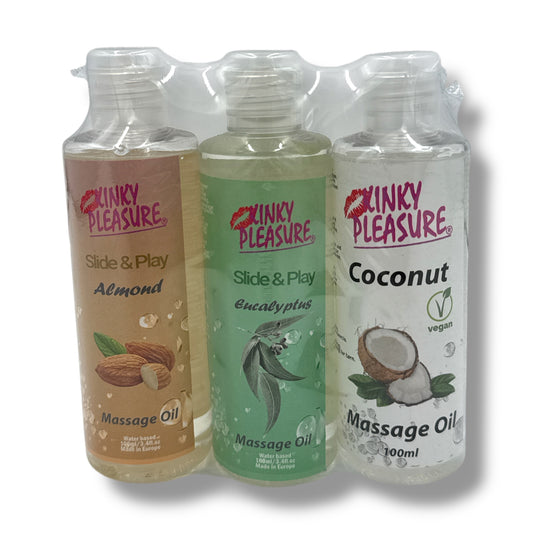 Kinky Pleasure - Massage Oil - 3 Models – 300ml – Eucalyptus, Almond, Coconut (100ml each)
