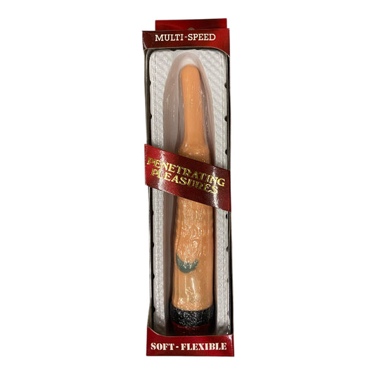 Realistic Flesh Vibrator with Curved Top And Extra Ribble In The Middle – Multi-Speed, Battery Operated, WIndowbox - Dark Spots Club