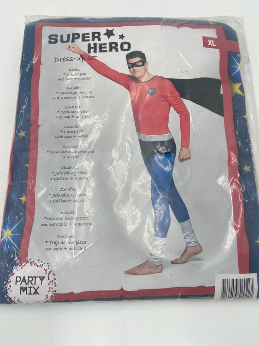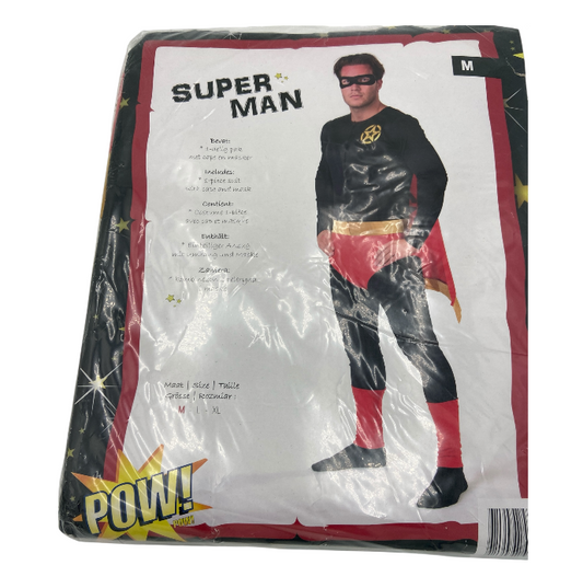 Kinky Dark Super Hero Costume – Super Man Black Suit with Red/Yellow Cape & Mask - Size M
