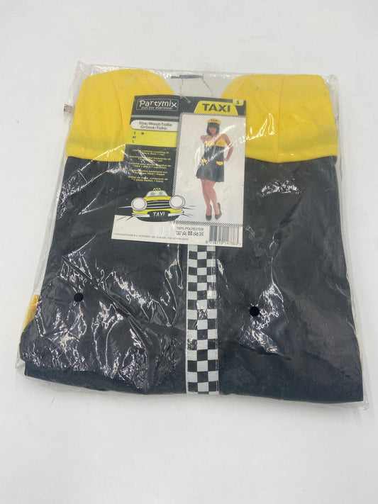 Kinky Taxi Driver Costume – Sexy Black/Yellow Mini Dress with Matching Cap – S / M / L