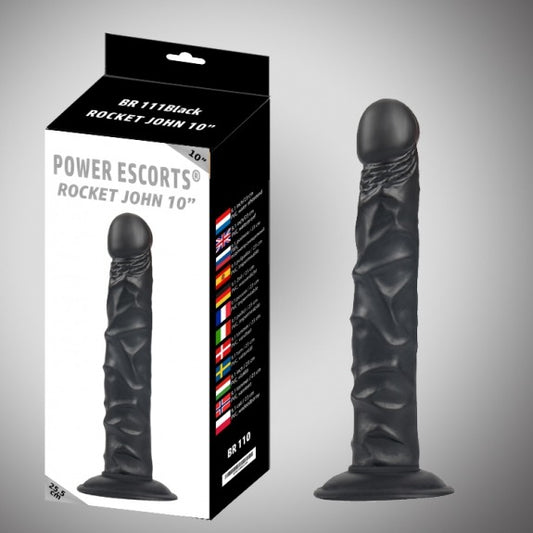 Power Escorts - BR111 - Rocket John 10'' - Realistic Dildo - 10 Inch / 25,5 CM - Black