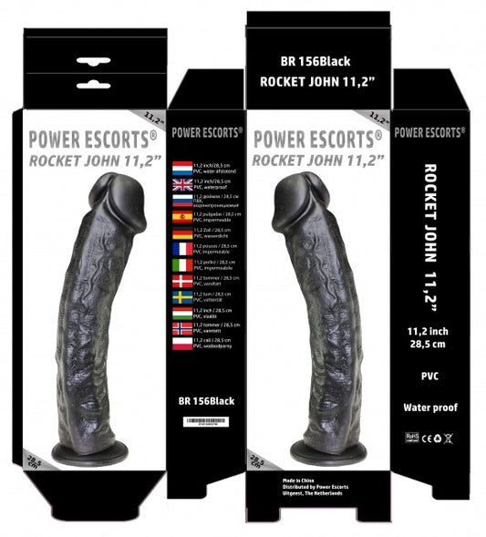 Power Escorts - BR158 Black - Rocket John 11,2'' - Mega Realistic Dildo - 11,2 Inch / 28,5 CM