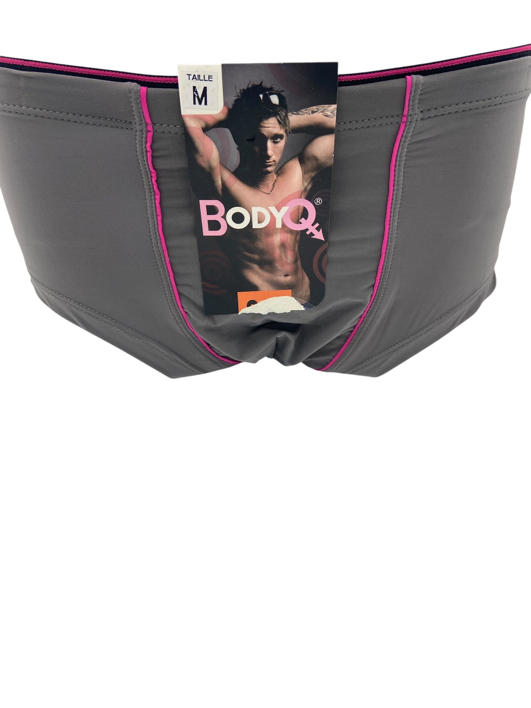BodyQ Male Lingerie - Sexy Men’s Underwear Boxer – Light Grey Pink Line | Men’s Lingerie Medium Size