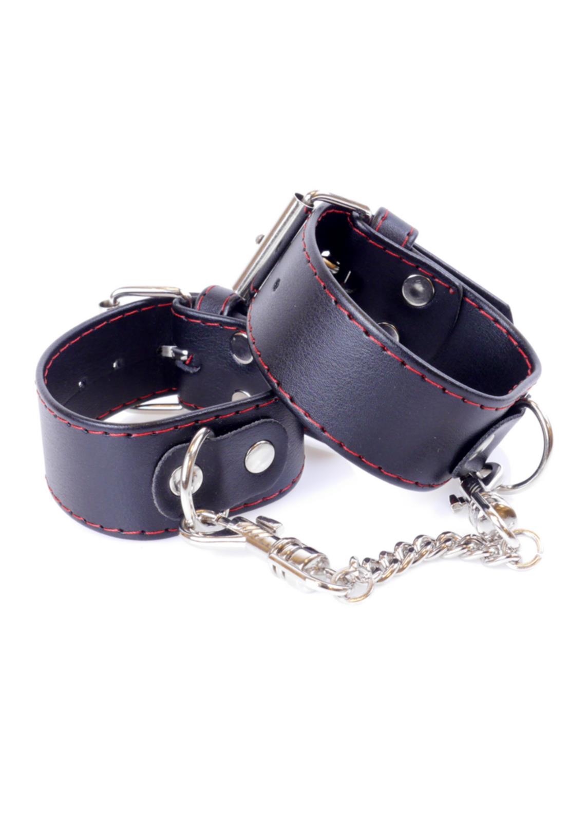Tie your subordinate's hands or tie them to bed for an exciting bondage experience! The cuffs can be adjusted in the range of 18 - 22 cm, so they always fit perfectly. The cuffs are attached to each other with a metal chain, but the clips also allow them to be separated and used in conjunction with other toys. Chain length: 5 cm + carabiners (10 cm together). The cuffs are made of artificial leather, soft to the touch, making them comfortable to wear. Cuff width: 3 cm.