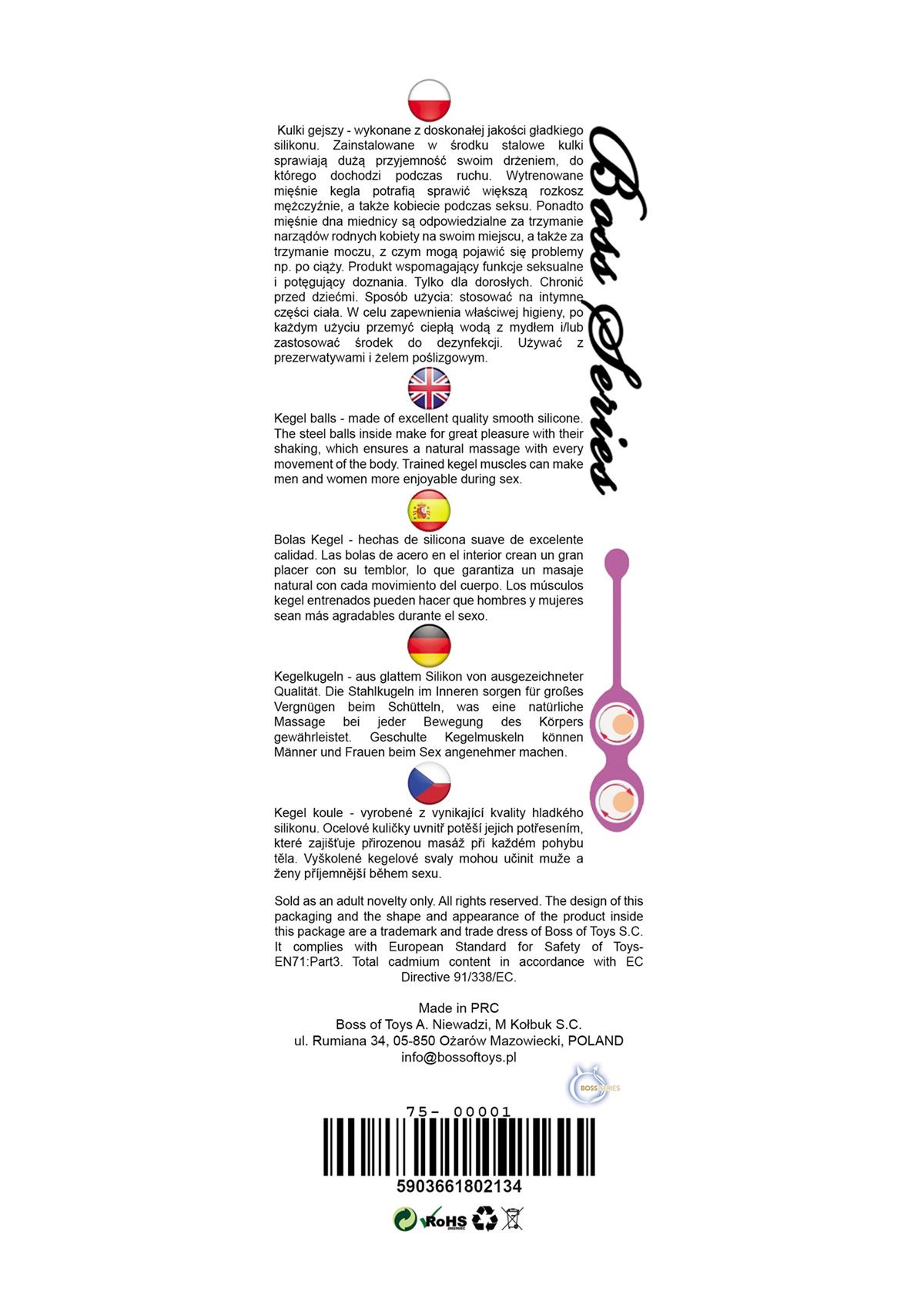 Bossoftoys - 75-0001 - Silicone Kegel Balls - length 16,5 cm - width 29mm - 60g - Pink - strong blister
