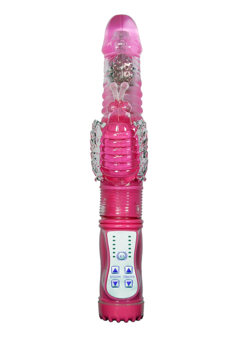 The vibrator is characterized by a butterfly-shaped clitoral stimulator and additional ridges to stimulate the G-spot. The vibrator has metal balls rotating in two directions that provide additional stimulation.