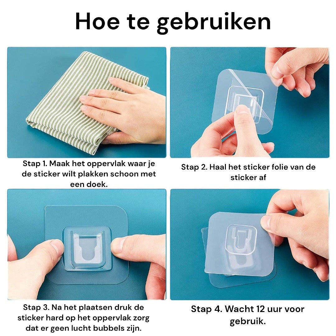 Easy Installation: Attaching the hooks is quick and easy. Simply remove the protective layer from the adhesive tape and place the hook on the desired surface. Press firmly to ensure the adhesive tape adheres well. No hassle with drilling or screws!