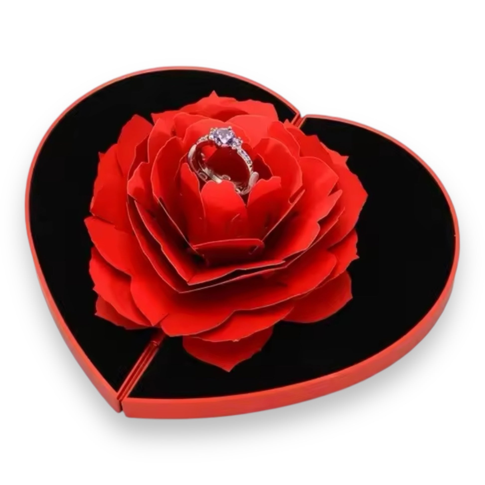 - Design: Flower-shaped deluxe ring box