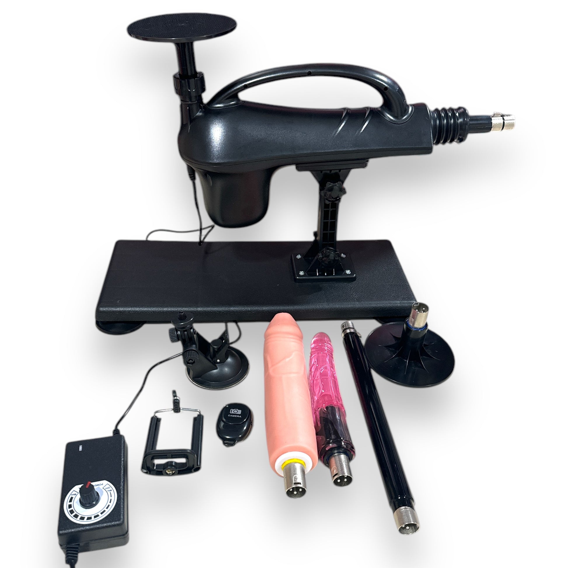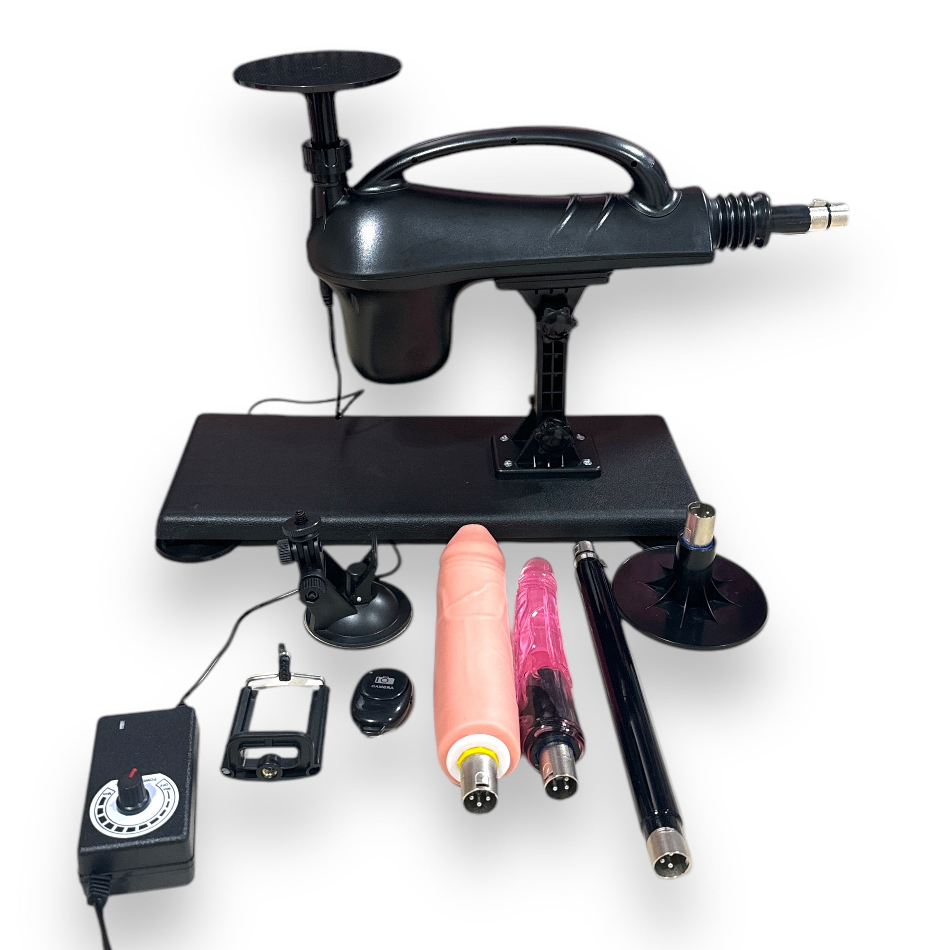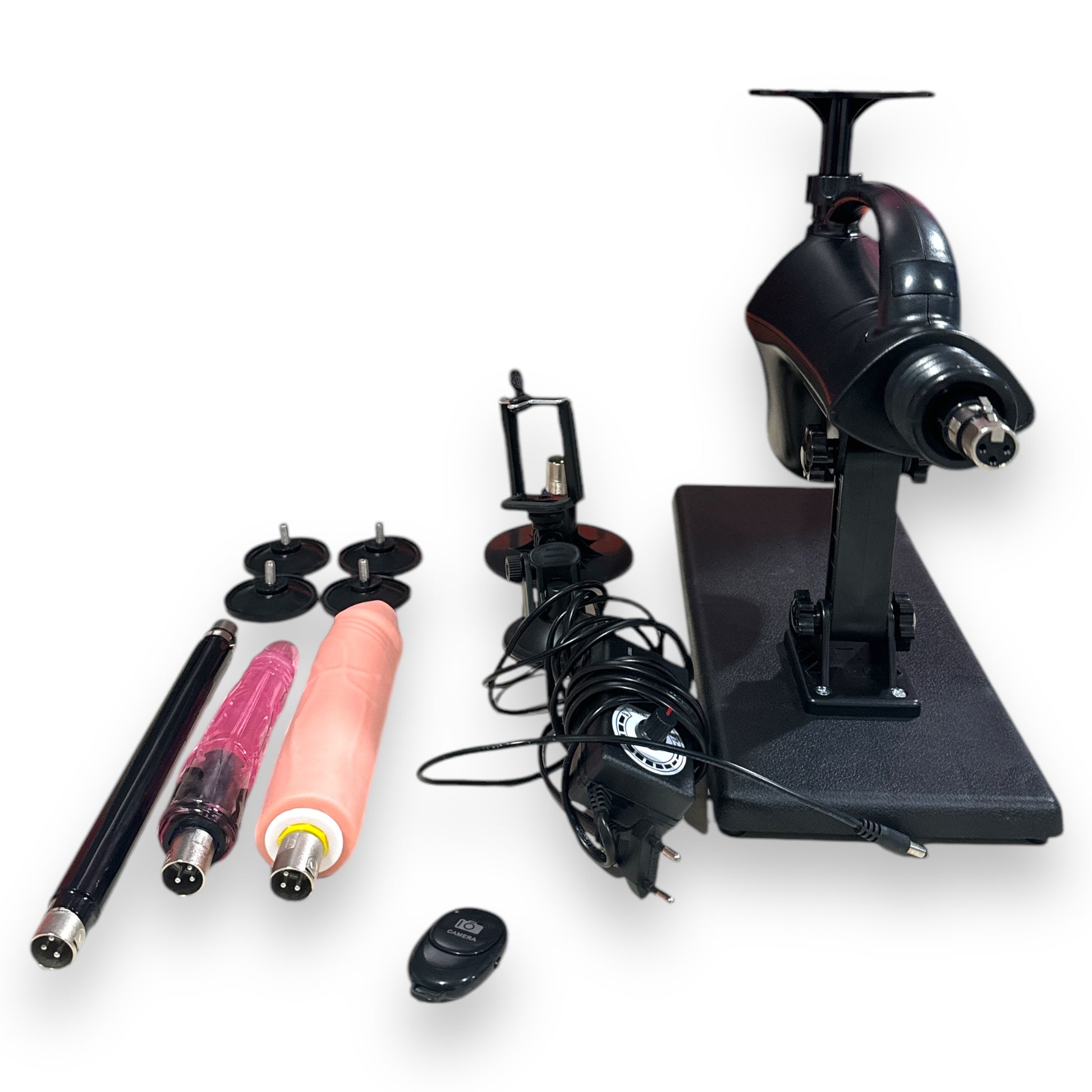 Indulge in the ultimate pleasure experience with the Kinky Pleasure AX108 Fuck Machine. This advanced device comes with three versatile attachments, including a flesh-toned dildo, a vibrant purple dildo, and an additional accessory. Perfectly designed for hands-free enjoyment and ultimate satisfaction, it combines powerful thrusting action with ease of control.