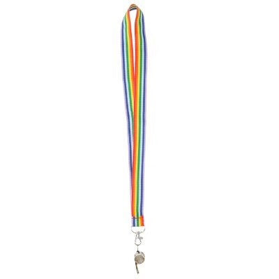 Material: Plastic whistle with polyester rainbow cord