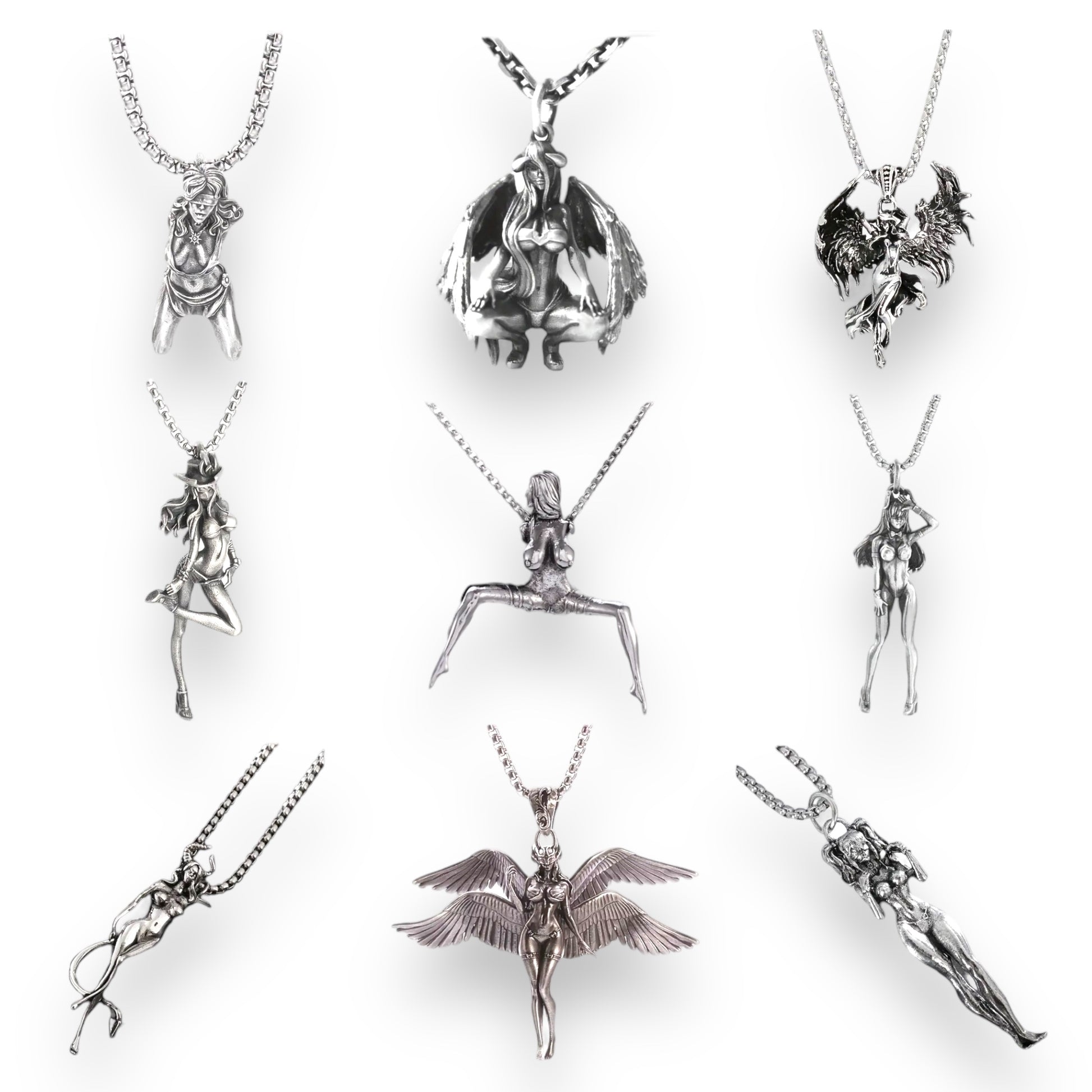 Explore the daring edge of fashion with the Kinky Pleasure 'Sexy Ladies' Necklace Series. This exclusive 9-piece ensemble, featuring model numbers T019 through T050, captures the essence of femininity in its most artistic and liberated form. Each piece is a celebration of individuality and style: