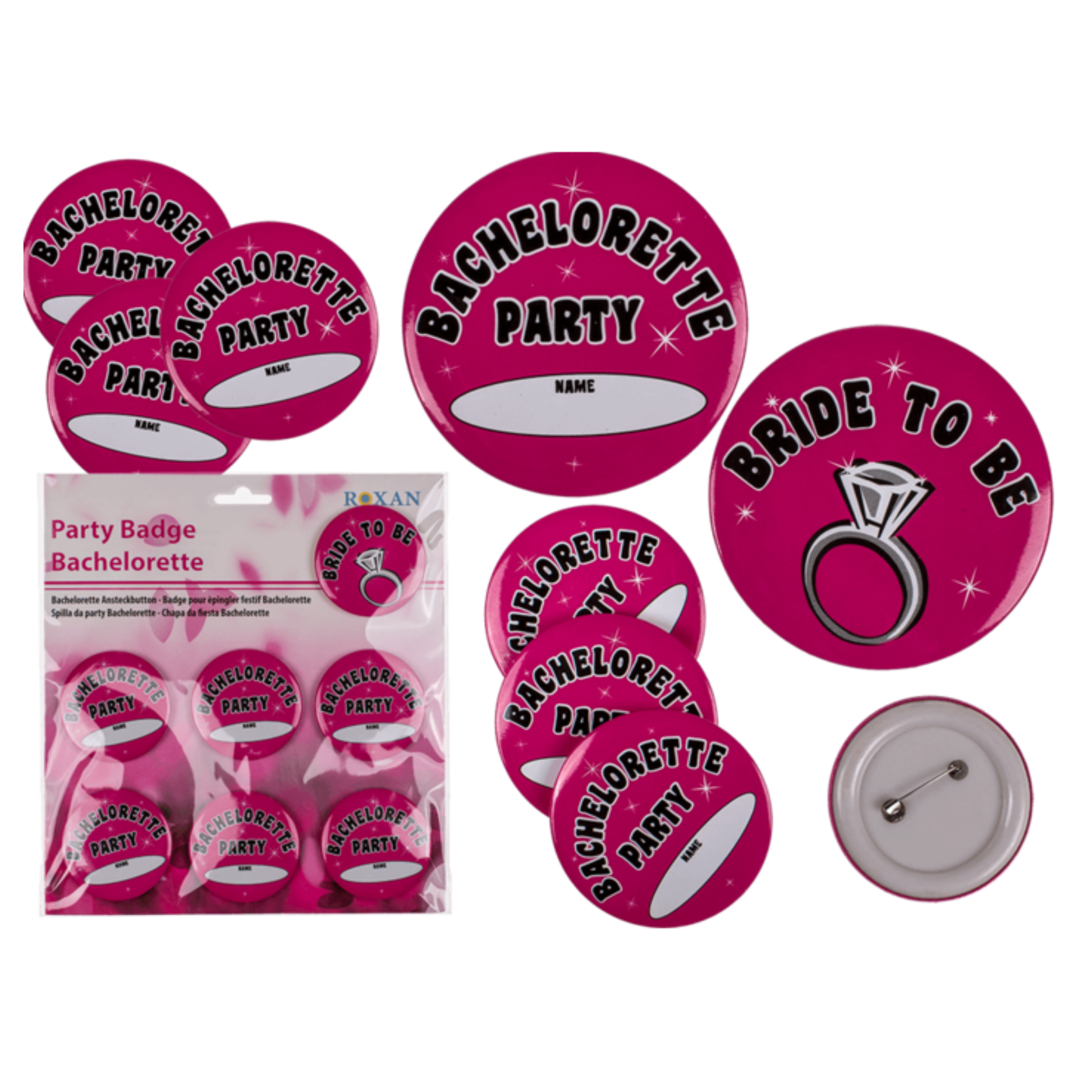 Content: 7x Pink Buttons, 1x XXL Button, 1x Bachelorette Bracelet, 8x Penis Skewers, 1x Wedding Veil, 1x Whistle, 1x XXL Pink Glasses
