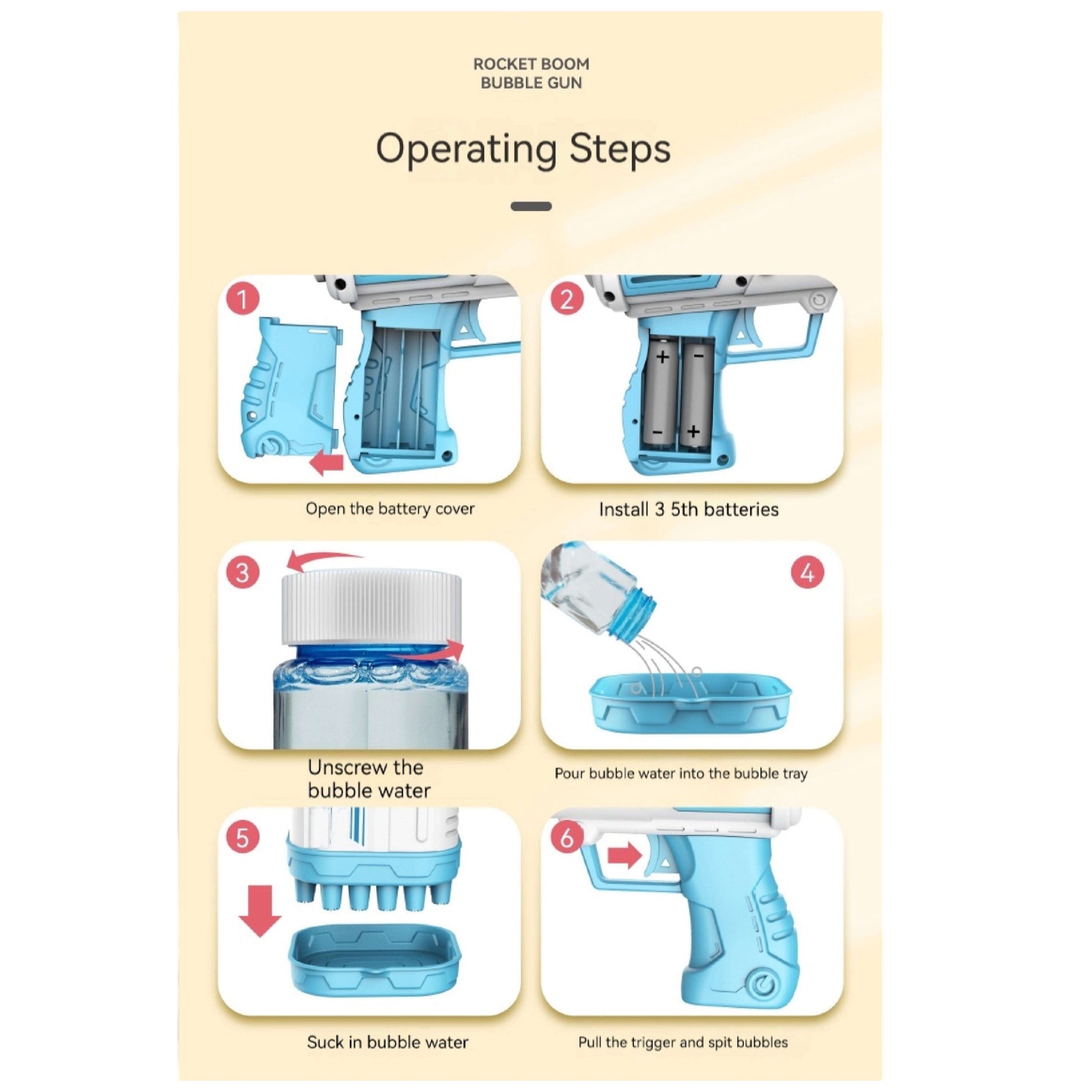 - Fun Rocket Design: Shaped like a rocket, this bubble gun shoots a stream of bubbles for an exciting play experience.