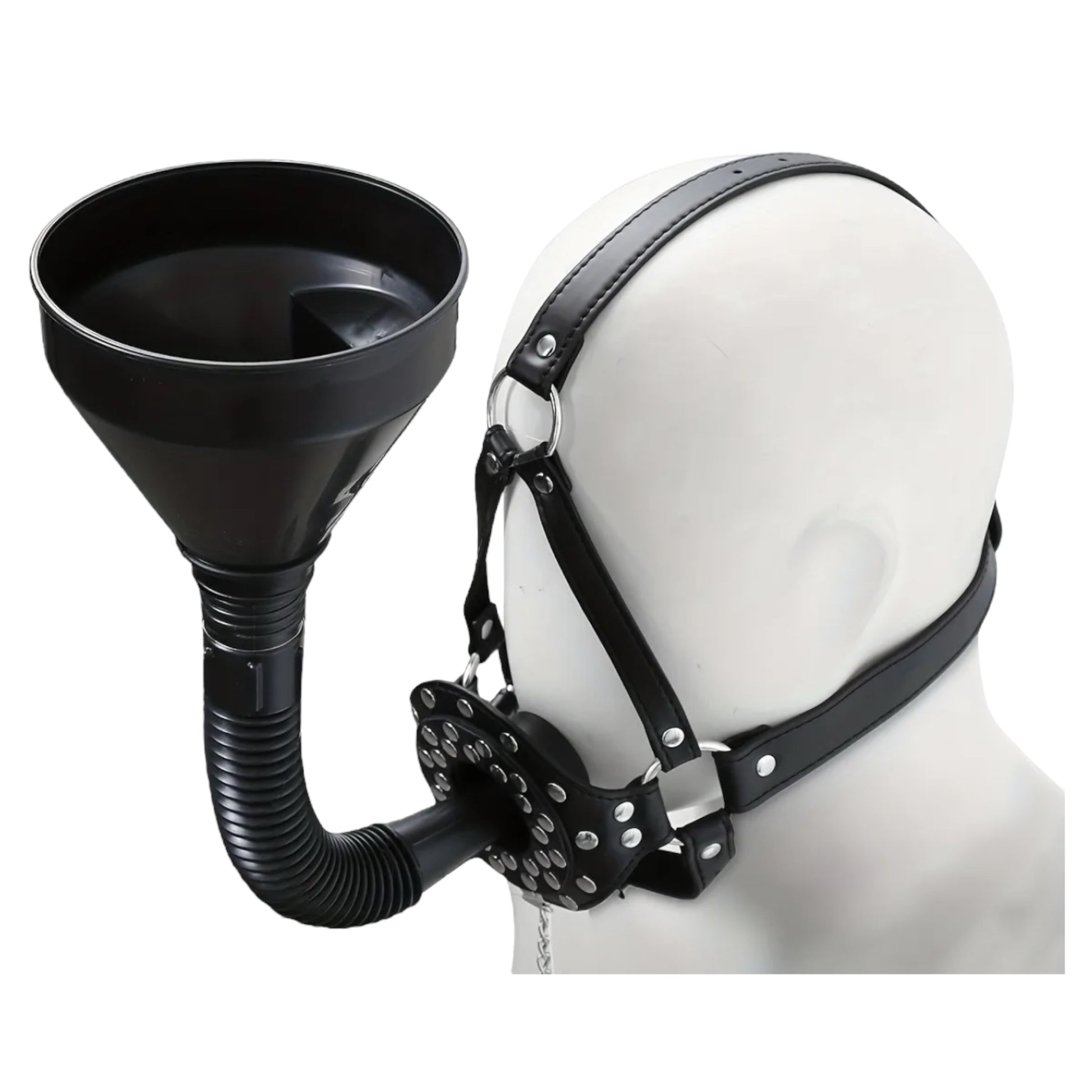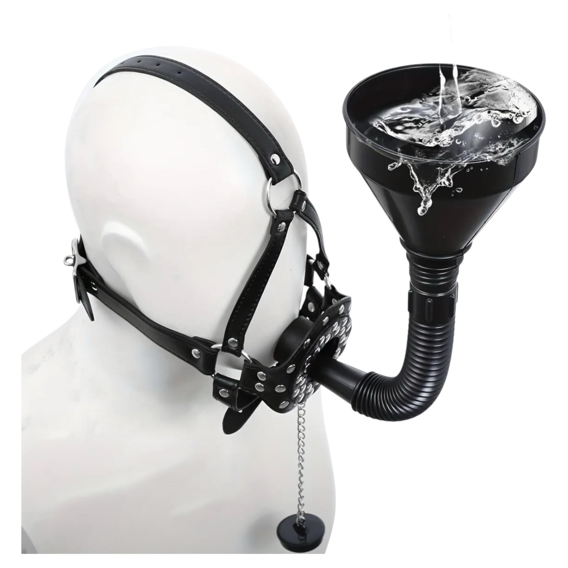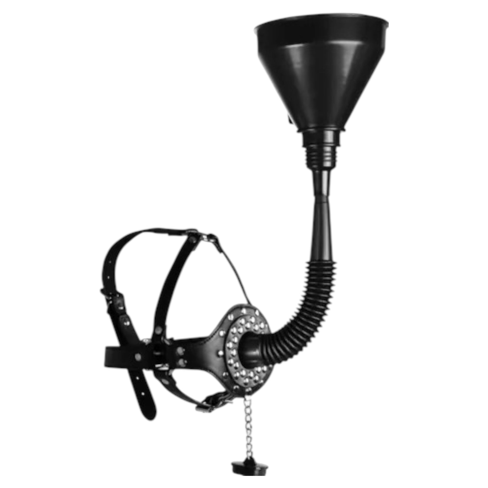 Take your BDSM roleplay and fetish exploration to the next level with the Extreme BDSM Drink Mask by Kinky Pleasure. This unique and bold accessory combines functionality with aesthetic appeal, making it an essential addition to any fetish enthusiast's collection. The drink funnel design adds an intriguing twist to roleplay scenarios, allowing for innovative interaction and heightened intimacy.