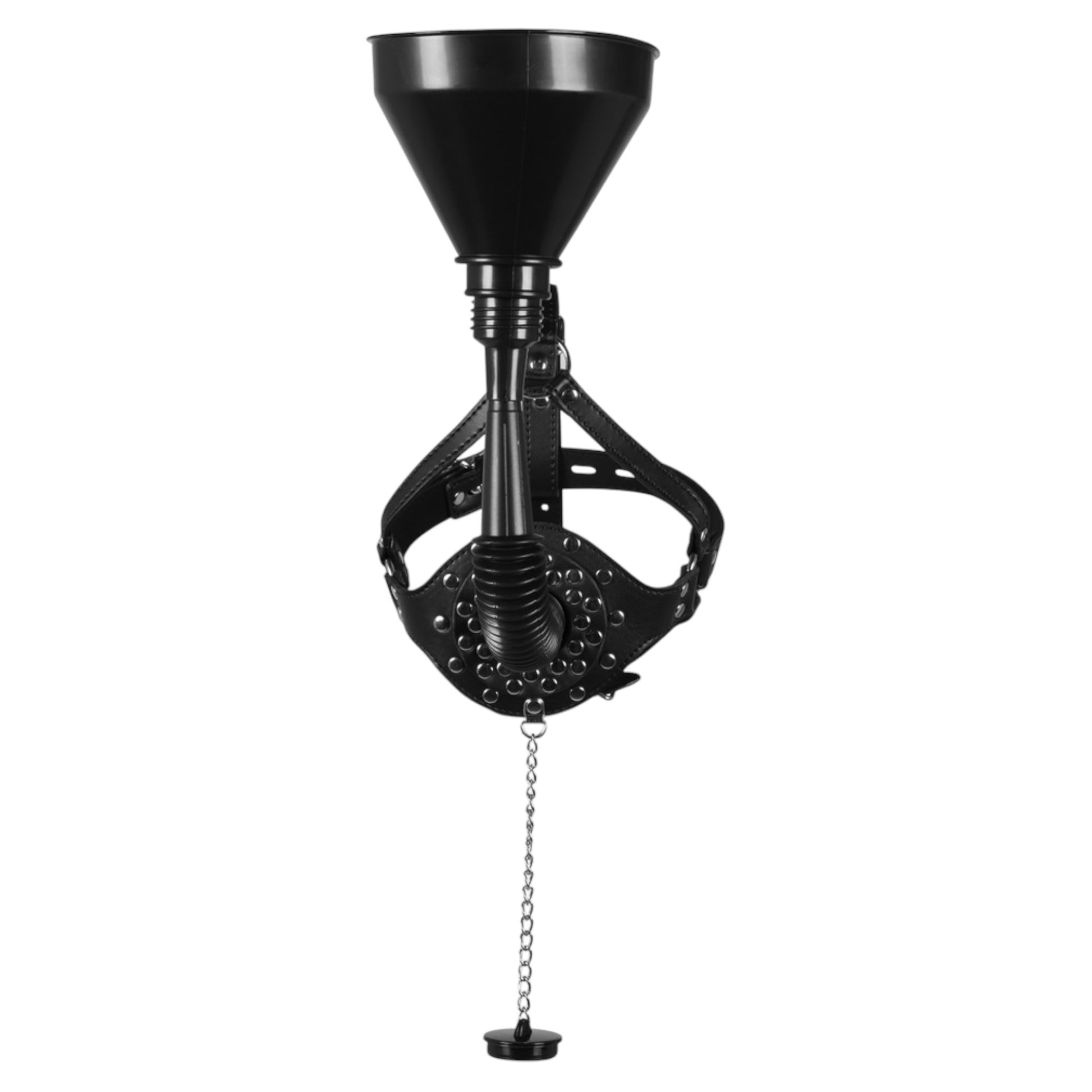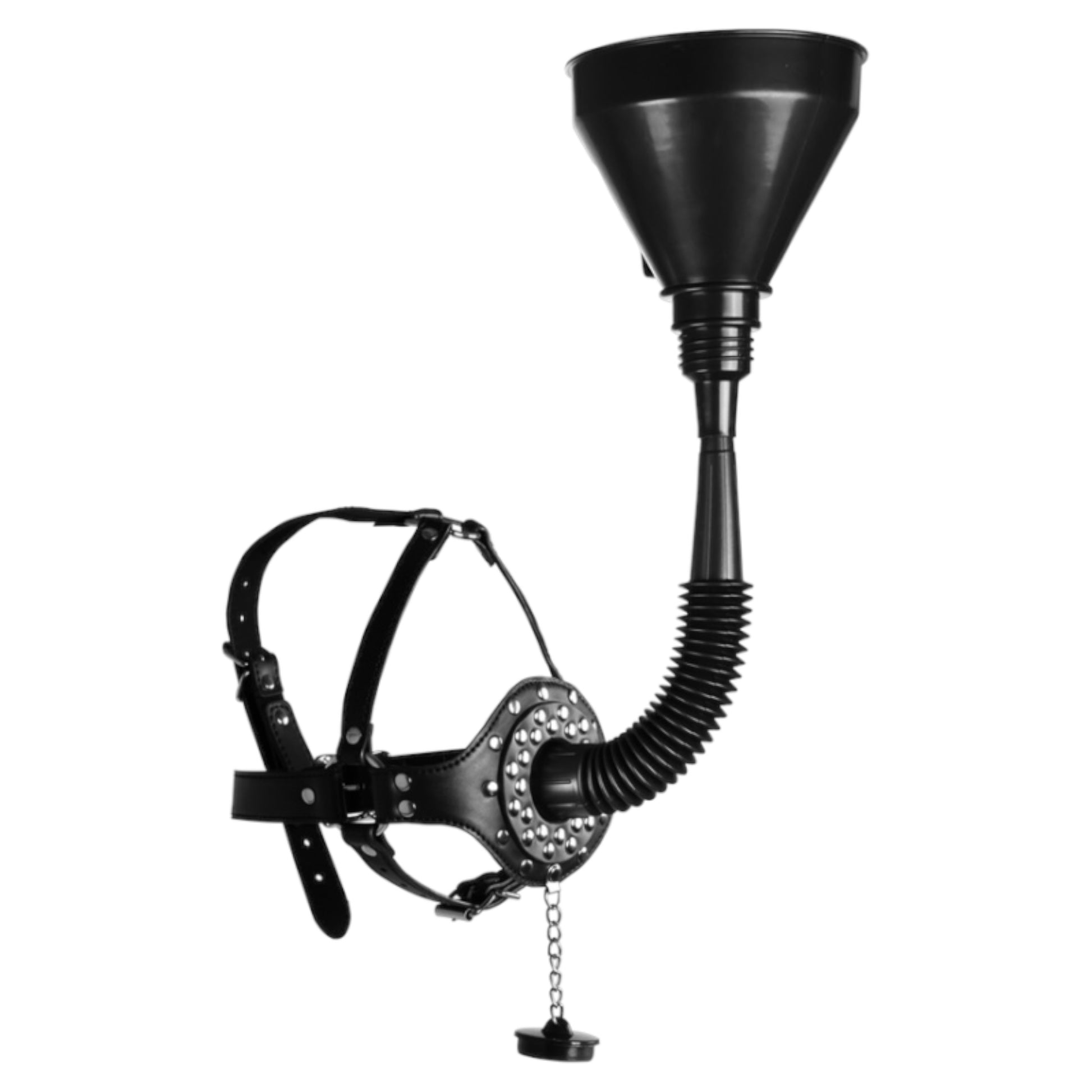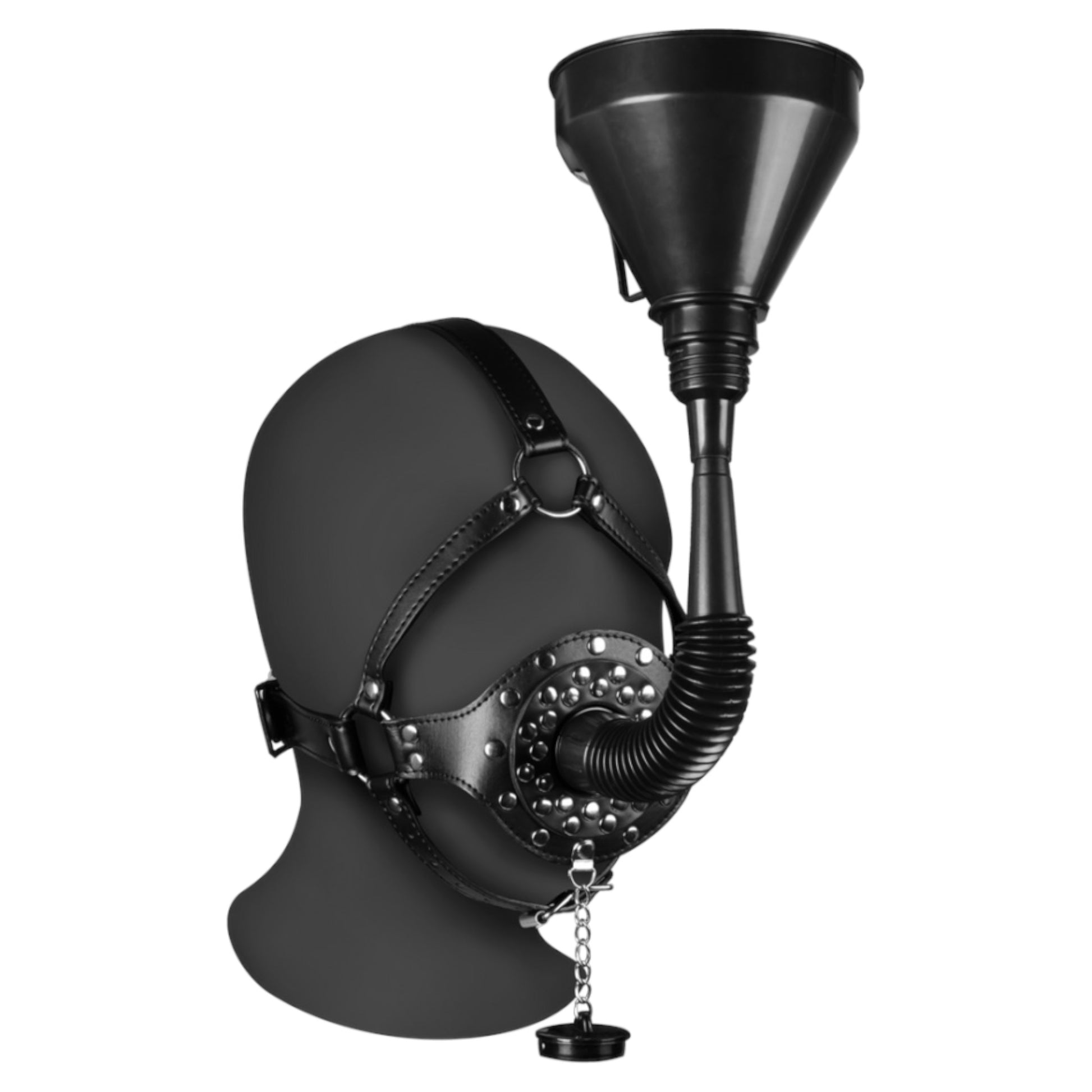 Take your BDSM roleplay and fetish exploration to the next level with the Extreme BDSM Drink Mask by Kinky Pleasure. This unique and bold accessory combines functionality with aesthetic appeal, making it an essential addition to any fetish enthusiast's collection. The drink funnel design adds an intriguing twist to roleplay scenarios, allowing for innovative interaction and heightened intimacy.