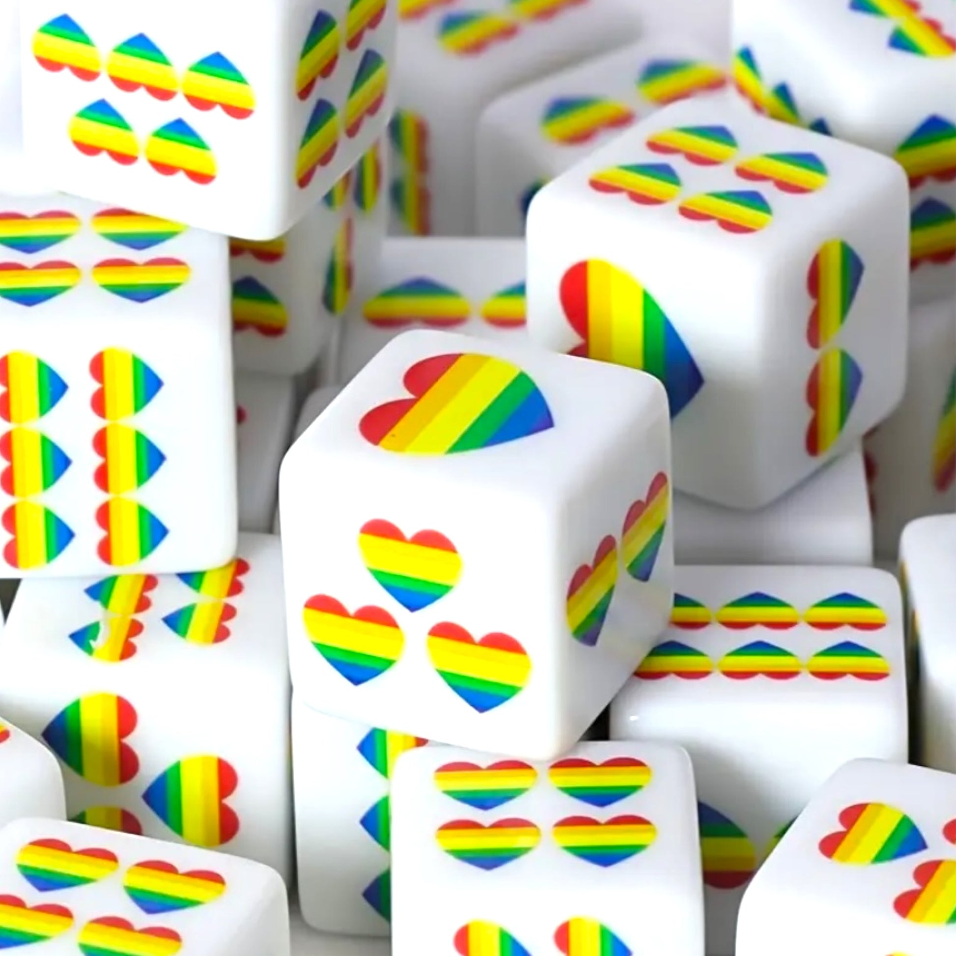 Colour/Type: White Dice with Rainbow Hearts