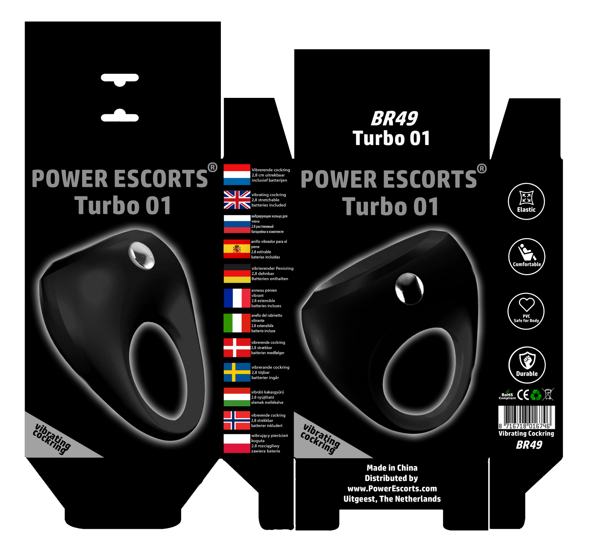 Power Escorts - BR49 - Turbo 01 Vibrating Cockring - Silicone - Black
