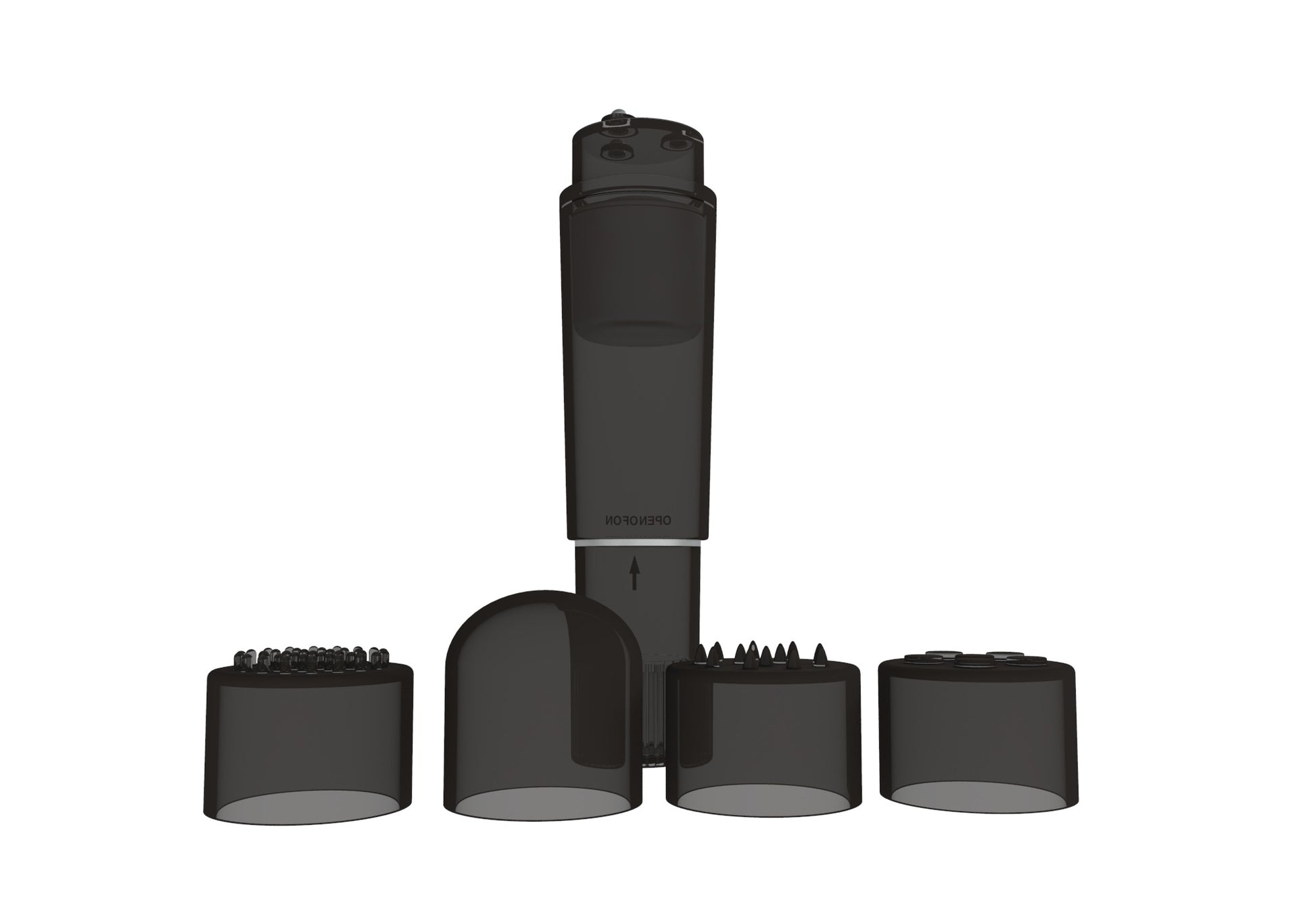 Power Escorts - BR258 - Pocket Rocket - Trendy Black - Mini wand vibrator with 4 different attachments - attractive Colour box