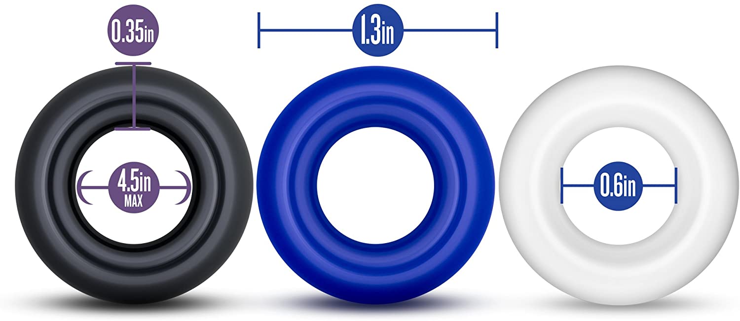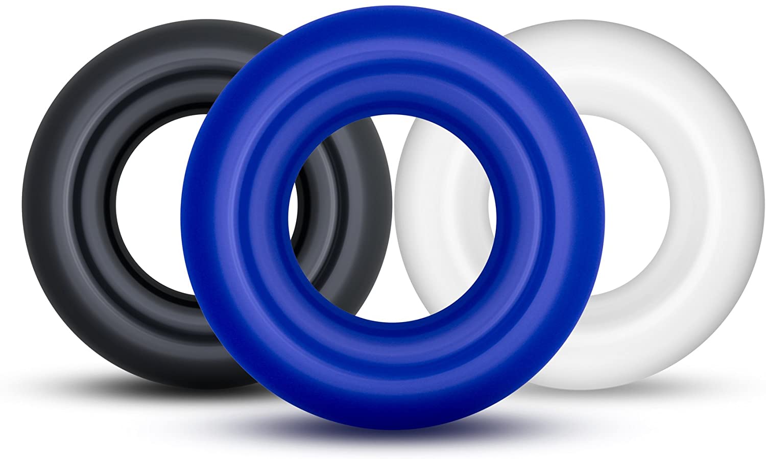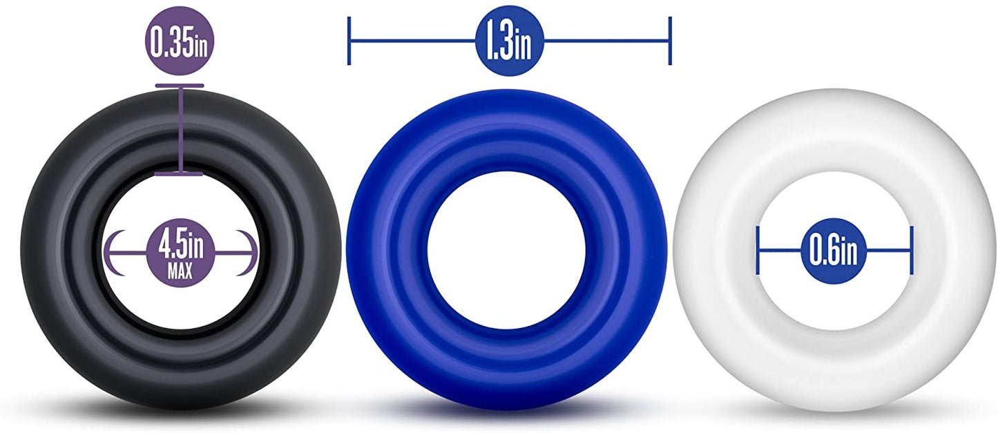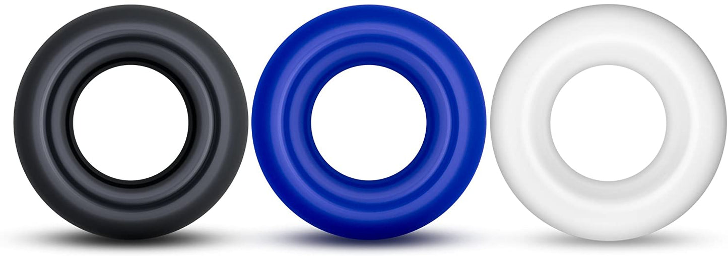 Power Escorts - BR272 - Donut Cockring 3 Pack - Super Stretchable - 3 colors blue /clear /black - attractive colourbox