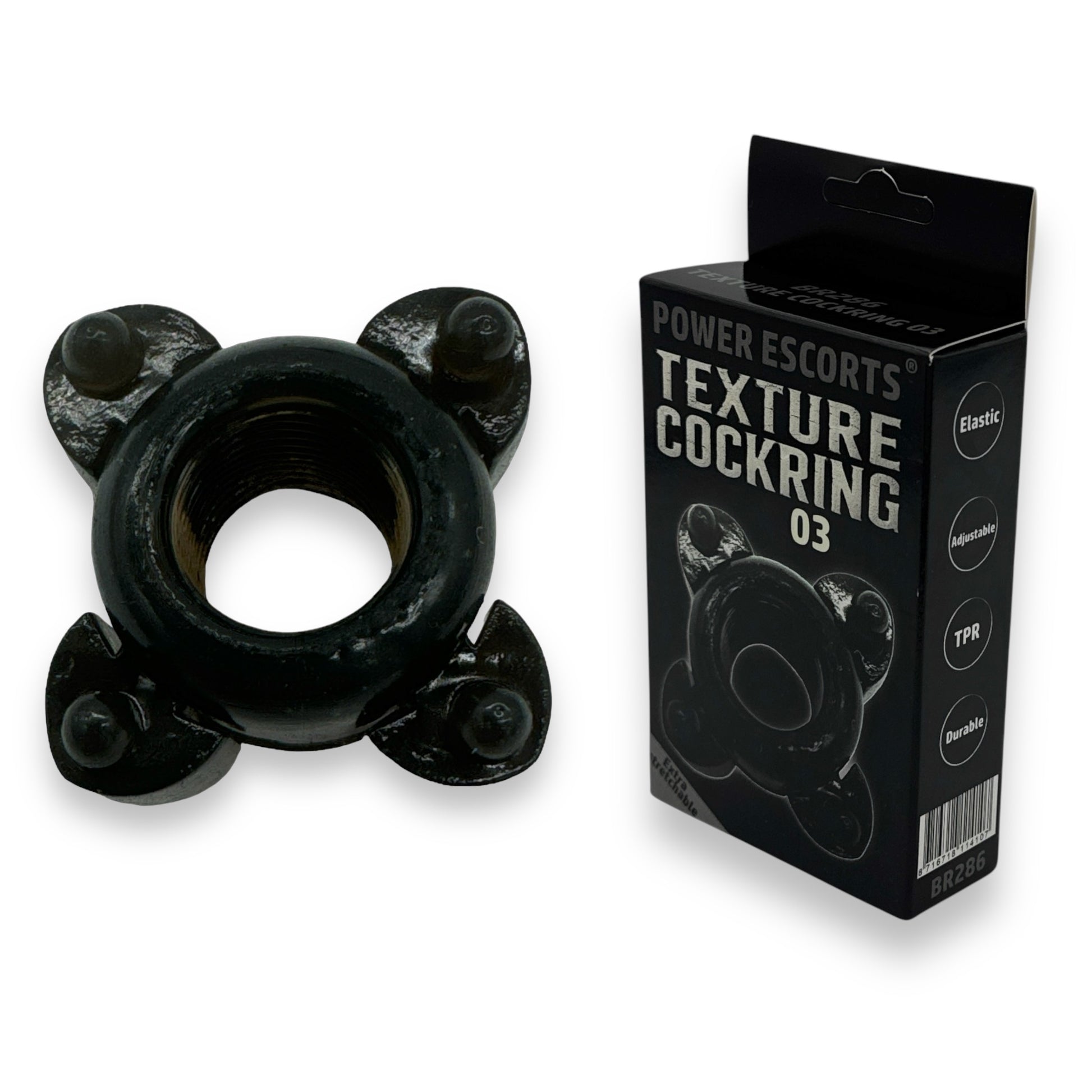Power Escorts - BR286 - Texture Cock Ring – Extra Stretchable, Durable, and Stylishly Black