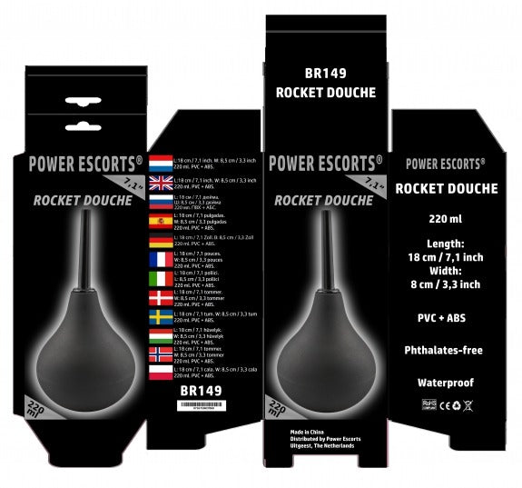 Power Escorts - Rocket Douche - Anal Shower - Suitable for Anal and Vaginal use - Rinse - Large - 220 ML - BR149 - Black