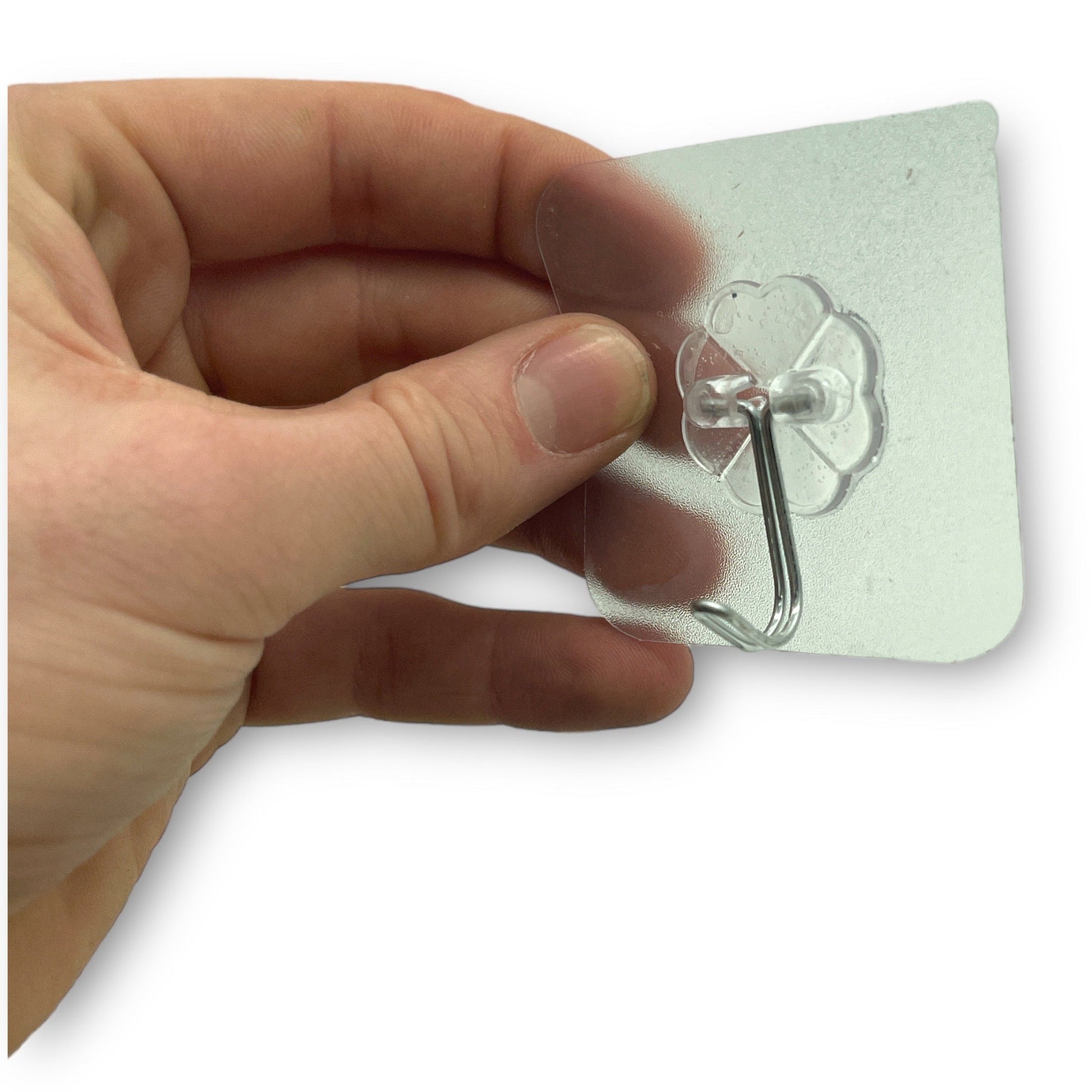 These self-adhesive hooks are perfect for creating extra storage space in the bathroom, kitchen, or storage room. The hooks are water-resistant and super strong, capable of adhering to any flat, dust- and grease-free surface, including natural stone, composite materials, tiles, wood, glass, metal, lacquered materials, and plastics. They are ideal for use on high-quality surfaces where you prefer not to leave drill holes, such as natural stone, ceramic tiles, and glass. The adhesive is super strong and can support multiple kilograms of weight. The hooks have a neutral design that fits into any interior and can be used to hang various items. They are easy to remove without leaving traces and feature a transparent adhesive surface with a stainless steel hook. To attach them, you'll need to first clean the surface from dust and grease and remove the protective plastic from the adhesive surface. Please note that the adhesion is less strong on textured surfaces or materials with a top layer that easily detaches.